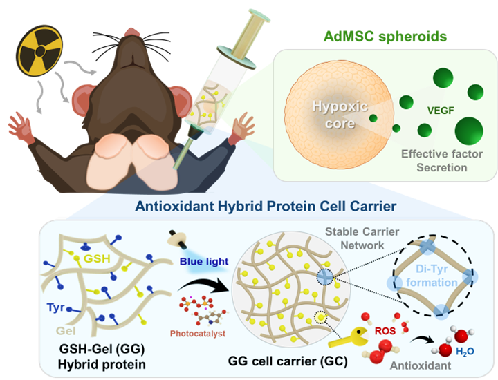 AdMSC spheroids encapsulating antioxidant hybrid protein carrier for irradiation-damaged salivary gland repair